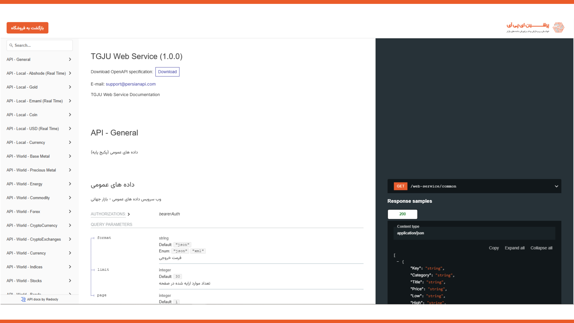 پارامترها: چه ورودیهایی (مانند شناسه محصول، کلید API) باید در درخواستها ارسال شوند (در URL، بدنه درخواست، هدرها و غیره).